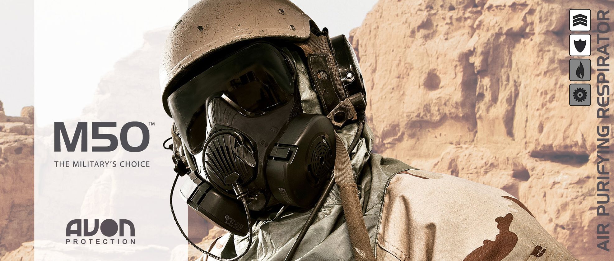 M50 är den senaste CBRN-godkända helmasken som specifikt har designats för att NATOs krav på en militär andningsmask. FM50 är framtagen för att möte de multipla hot som kan mötas i modern strids, Anti-terrorist och fredsbevarande uppdrag och ger en helt ny dimension på design, komfort och skydd.
